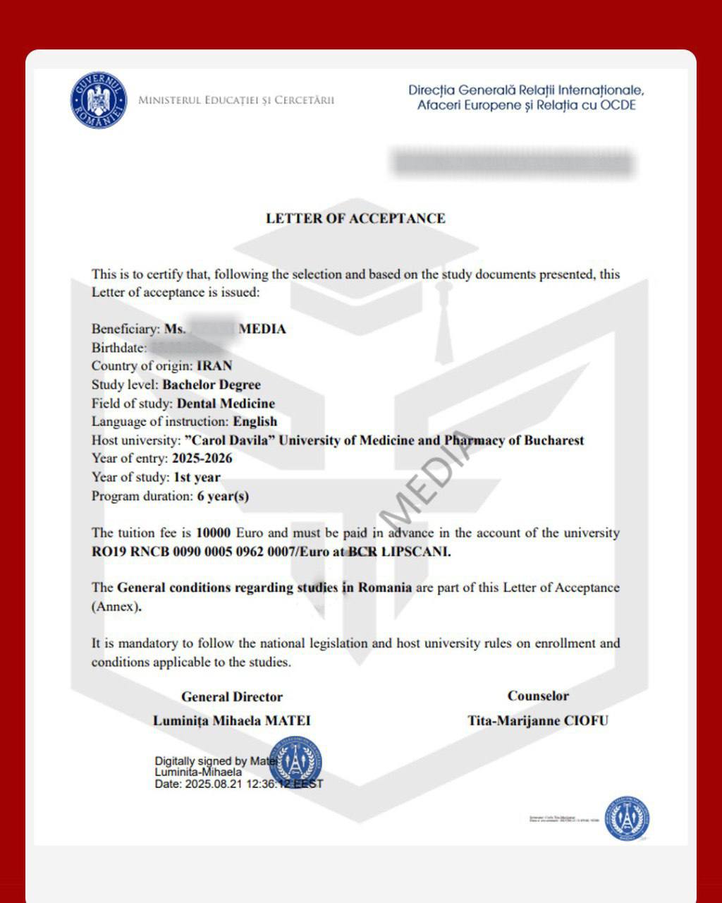 #پذیرش_تحصیلی_رومانی #اپلای #اپلای_تحصیلی #تحصیلی #ویزا_تحصیلی #تحصیل_در_خارج #دانشجویان_بین_المللی #اخذ_پذیرش #کارول_داویلا
