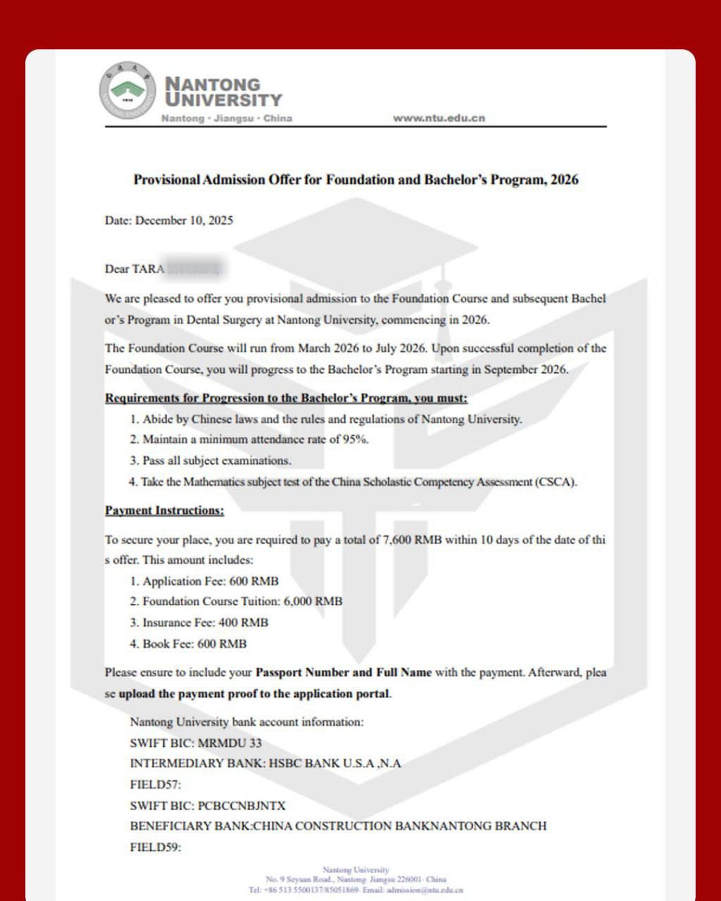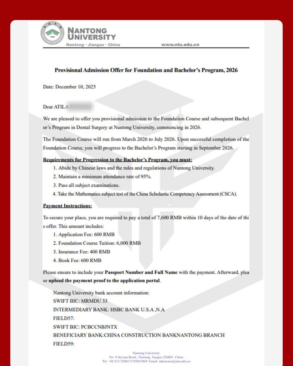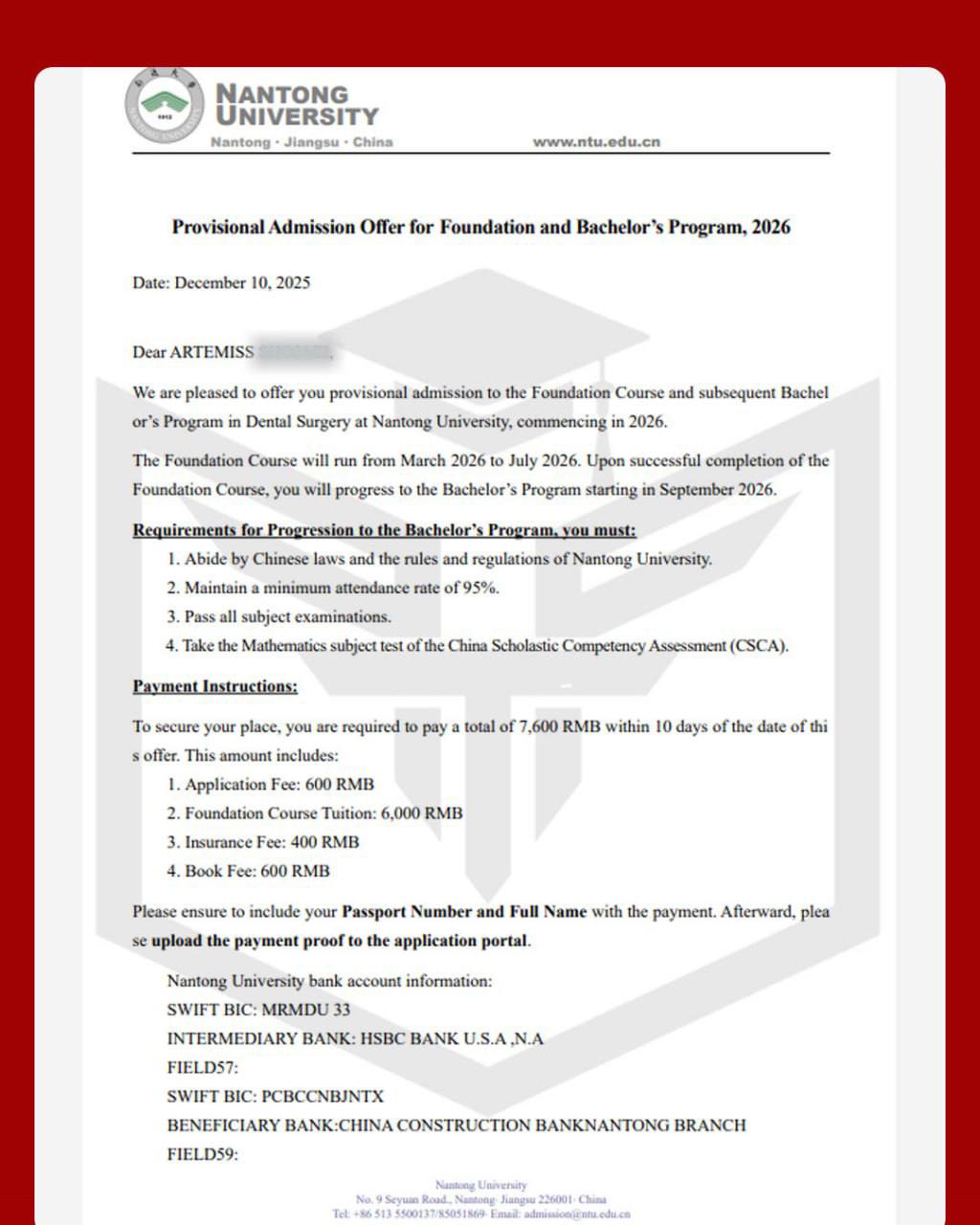 ۳ پذیرش دوره پریدنتال دانشگاه نانتونگ ورودی بهمن ۲۰۲۶