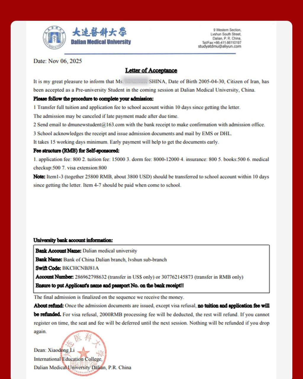 📌با ما اخذ پذيرش دانشجويي موفق و بدون ريسك را تجربه کنید.